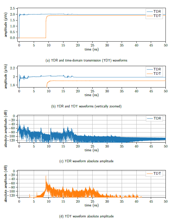 S-parameter frequency resolution and its relationship to impulse response length is a complicated topic, but a topic that must be understood and handled properly by the signal integrity engineer, whether using a VNA or TDR instrument to measure s-parameters. Since time-domain implications of s-parameters used in signal integrity analysis are so important, one should understand the electrical length limitations of the measurement instruments and the controls such as the acquisition length mode of the WavePulser 40iX. That being said, the default acquisition length of 50 ns is adequate for most device measurements, with the longest mode supporting the measurement of devices up to 200 ns in electrical length. More details on these topics can be found in the references.