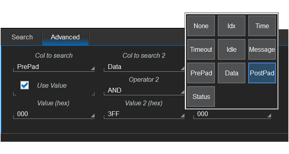 快速搜索经过解码的 Manchester 或 NRZ 编码总线的长捕获以获取特定详细信息,例如数据、同步、帧间间隙或状态。