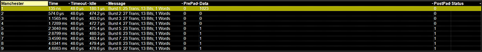 Manchester 和 NRZ 编码方案都使用多种方法将位转换为字、将字转换为数据包以及将数据包转换为协议。 可配置的 Manchester 和 NRZ 解码功能旨在提供显示基于这些编码方案构建的解码协议信息所需的灵活性。 这种灵活性可以快速解码基于行业标准或自定义专有协议构建的协议。