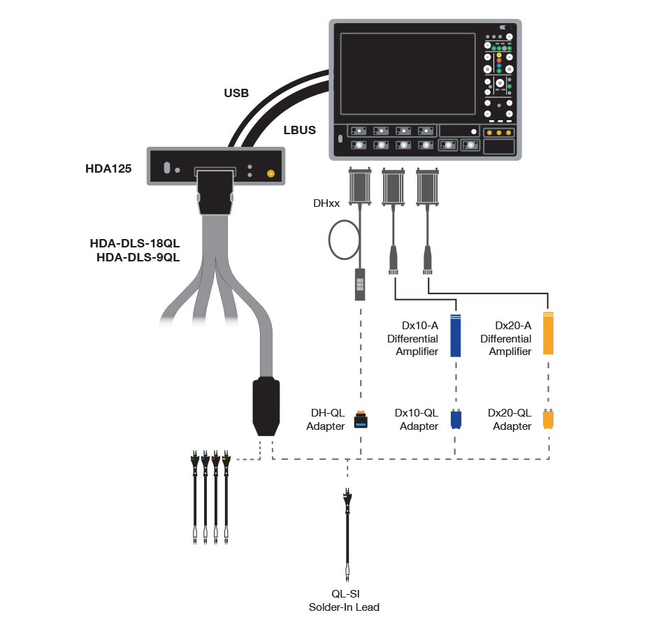 DH-QL适配器可以将QuickLink焊接探头尖端与任何DH系列探头配合使用。对于嵌入式系统的验证和调试,这些探头可以用于DH系列探头的模拟探测以及HDA125高速数字分析仪的数字采集。