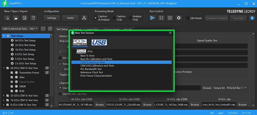 QPHY2-PCIE5-TX-RX PCI Express 5.0 电气发射器和接收器软件是一种全自动测试解决方案,符合 PCIe 5.0 基本规范和 PCIe 5.0 PHY 测试规范的要求,用于对发射器和接收器进行特性分析和一致性测试。
