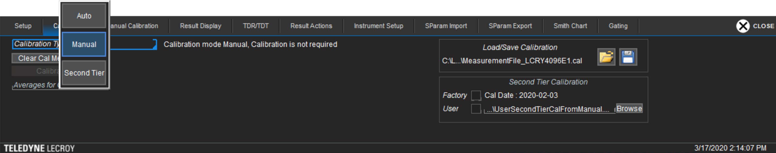 As also shown in figure 2, a manual calibration can be selected, which would invoke the Manual Calibration menu as shown in figure 3. Some discussion of manual calibration is needed to put the second-tier calibration in context.