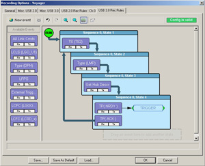 这个 Voyager 提供硬件触发以查明感兴趣的协议事件。 可以在最低级别指定触发事件,包括总线状态和有序集(链接、SKP 等)或标头字段,包括路由字符串或数据包类型(ACK、数据等)。 Voyager图形化的拖放界面使设置变得简单。 用户可以定义触发逻辑来监控多个顺序事件触发场景,包括 SCSI 操作、计数器、循环和计时器,所有这些都在一个多级序列中。
